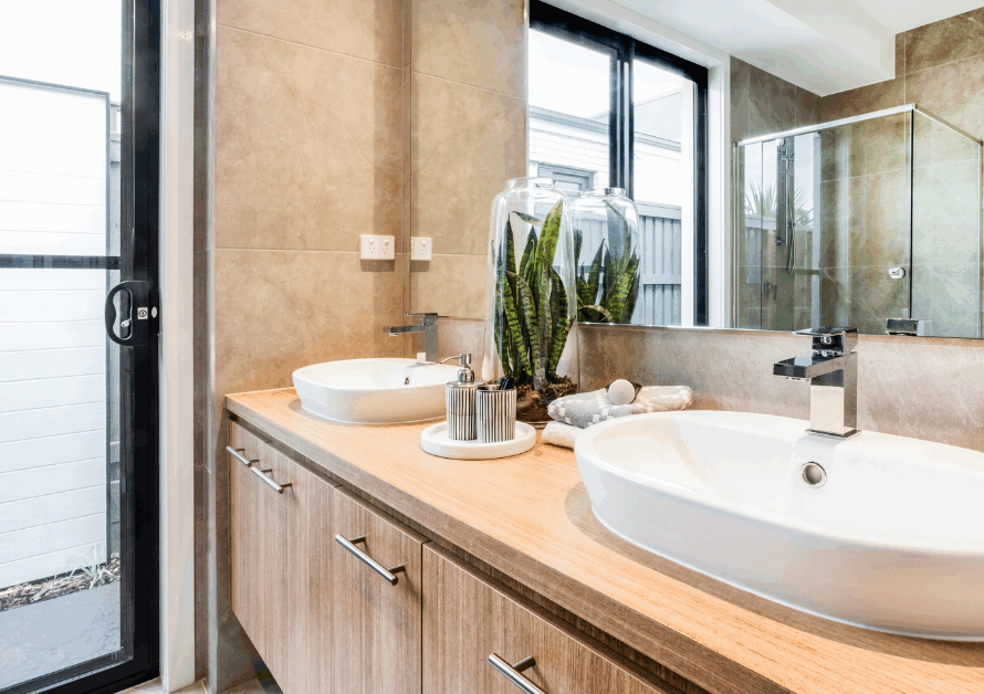 Choose durable materials like high-quality bathroom vanities and countertops. For tiles, opt for large-format tiles to reduce grout lines and make cleaning easier. Consider using recycled glass tiles, natural stone, or quartzite countertops that are both beautiful and durable. When selecting materials, ensure they complement your overall bathroom design.